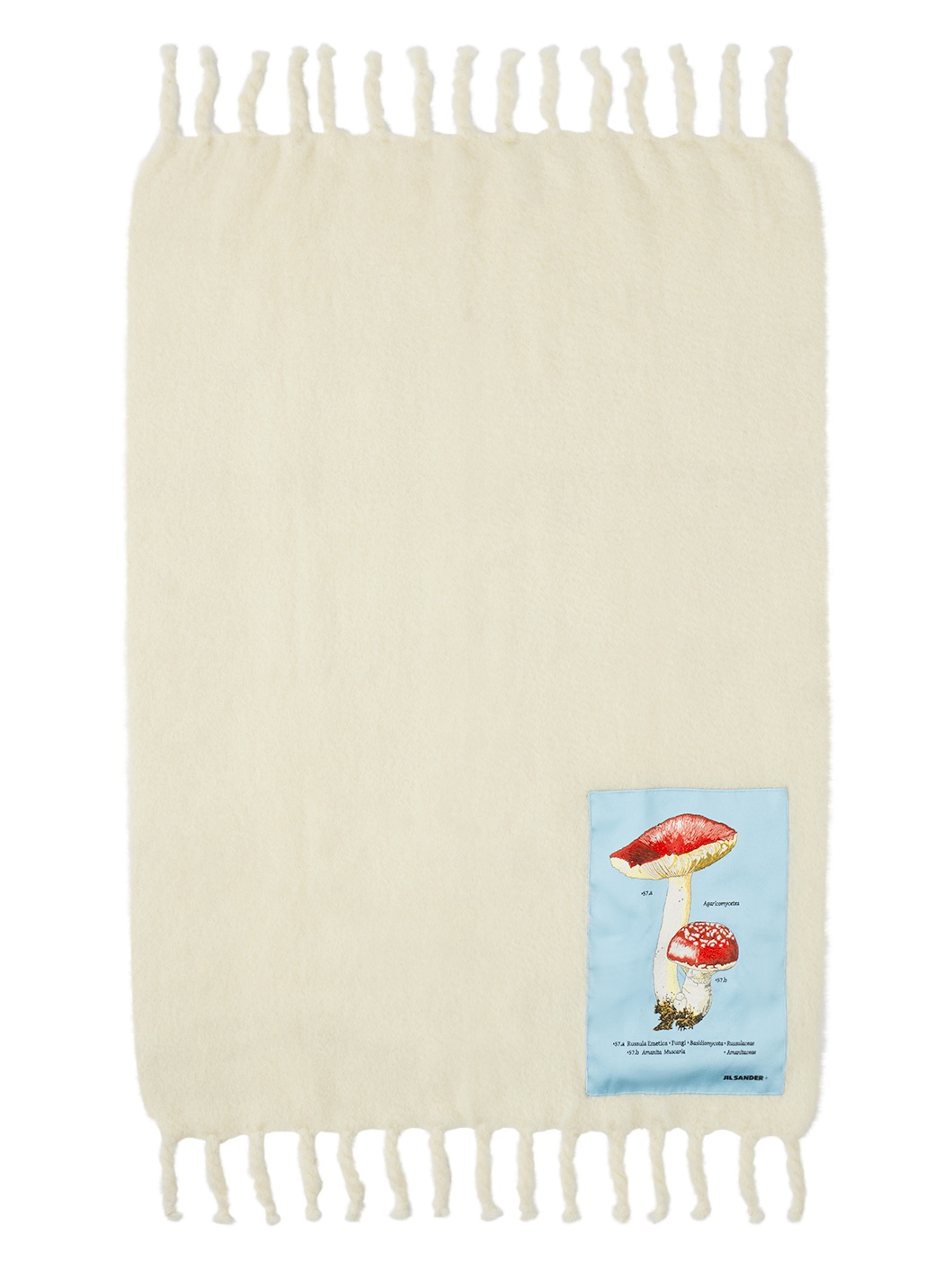 Hand-knit mohair and wool-blend blanket in off-white. - Fringed ends - Multicolor graphic patch at corner - H180 x W130 cm Supplier color: White