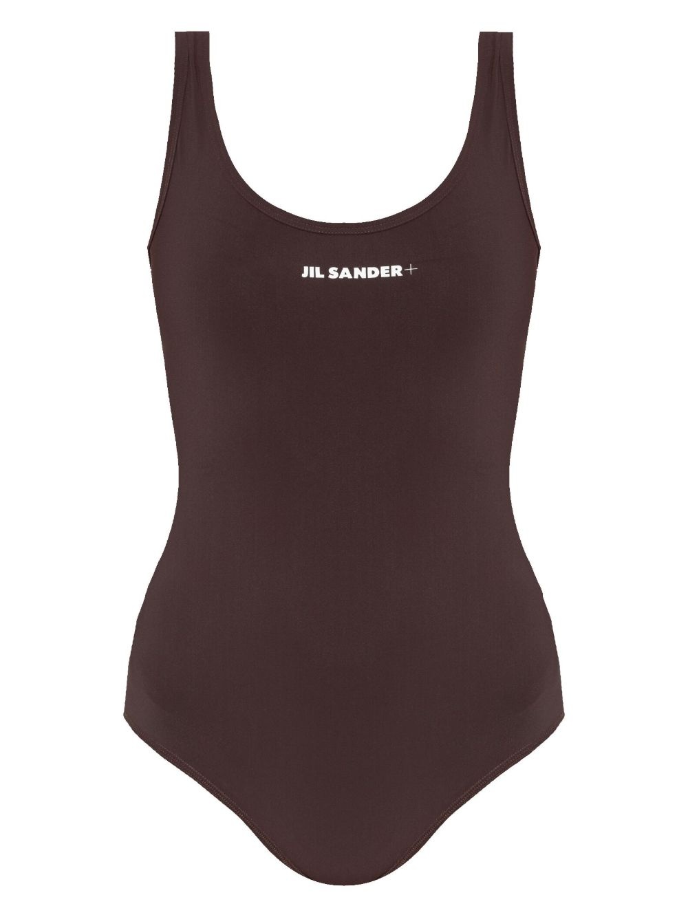 logo-print swimsuit Highlights - Chocolate brown - Scoop neck - Scoop back - Sleeveless - Be mindful to try on swimwear over your own garments. Made in Italy Composition Polyamide 72%, Elastane 28%