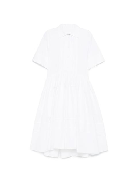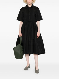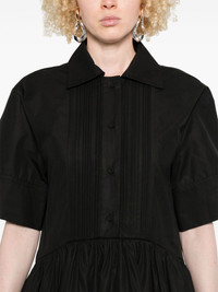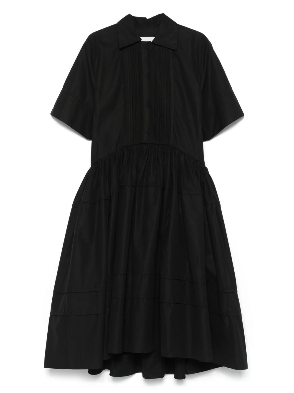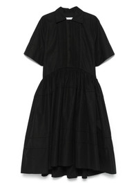 organic cotton dress Highlights - Black - Front button placket - Two side slit pockets - Pleat detailing - Flared skirt Made in Italy Composition Organic Cotton 100% SIZE & FIT Model measurements Height 5 ft 9 in(1.75 m) Bust/Chest 34.64 in(88 cm) Hips 36.61 in(93 cm) Waist 26.37 in(67 cm) FittingInformation Designed for a slim fit that sits just away from the body offering a close yet comfortable fit The partially elasticated waistband offers increased movement and comfort at the waist Made from a midweight non-stretch fabric Washing instructions Dry Clean Only