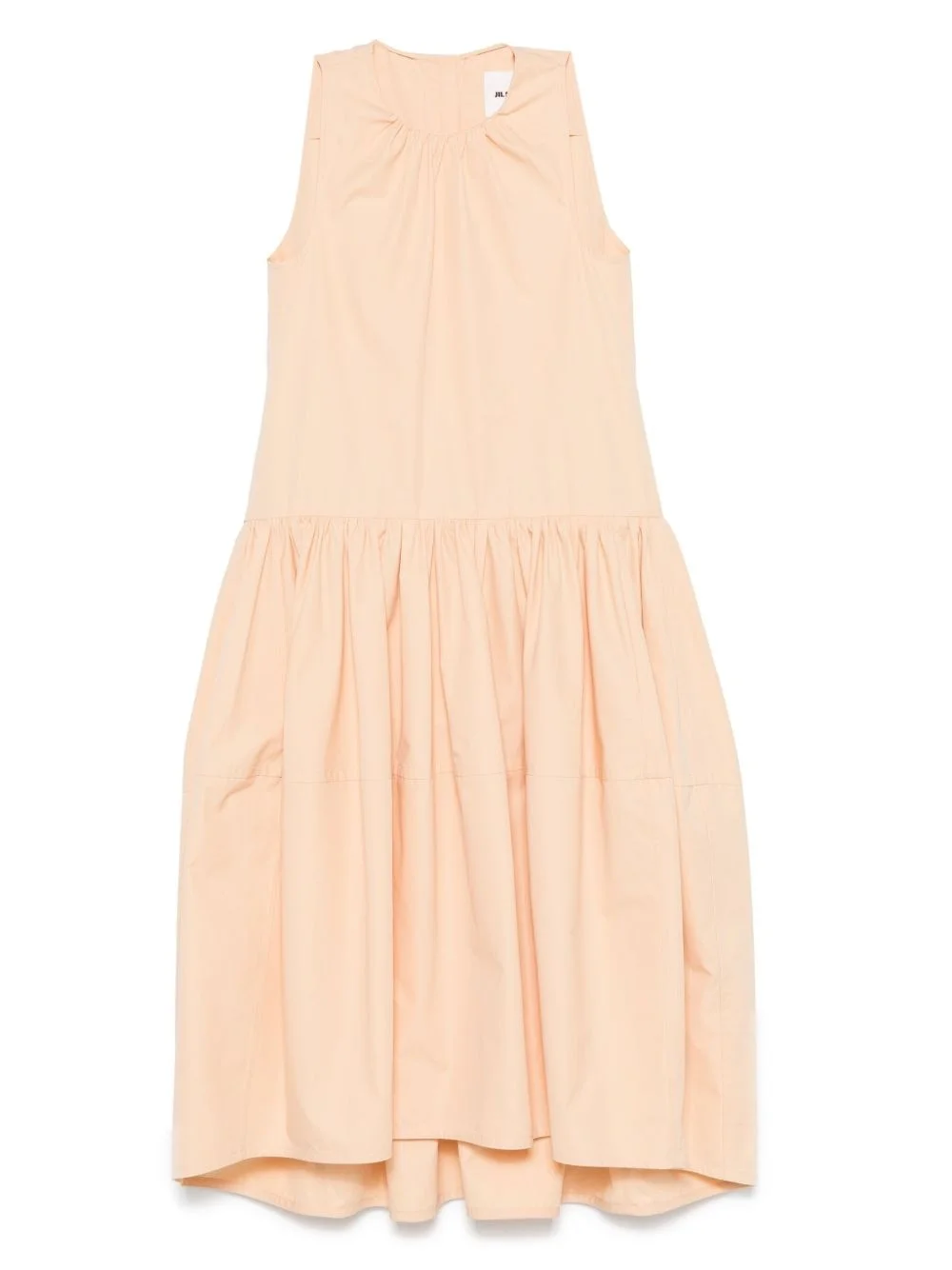 organic cotton dress Highlights - Light orange - Concealed rear zip fastening - Two side slit pockets - Flared skirt Made in Italy Composition Organic Cotton 100% SIZE & FIT Model measurements Height 5 ft 9 in(1.75 m) Bust/Chest 34.64 in(88 cm) Hips 36.61 in(93 cm) Waist 26.37 in(67 cm) FittingInformation Designed for a slim fit that sits just away from the body offering a close yet comfortable fit Made from a midweight non-stretch fabric Washing instructions Dry Clean Only