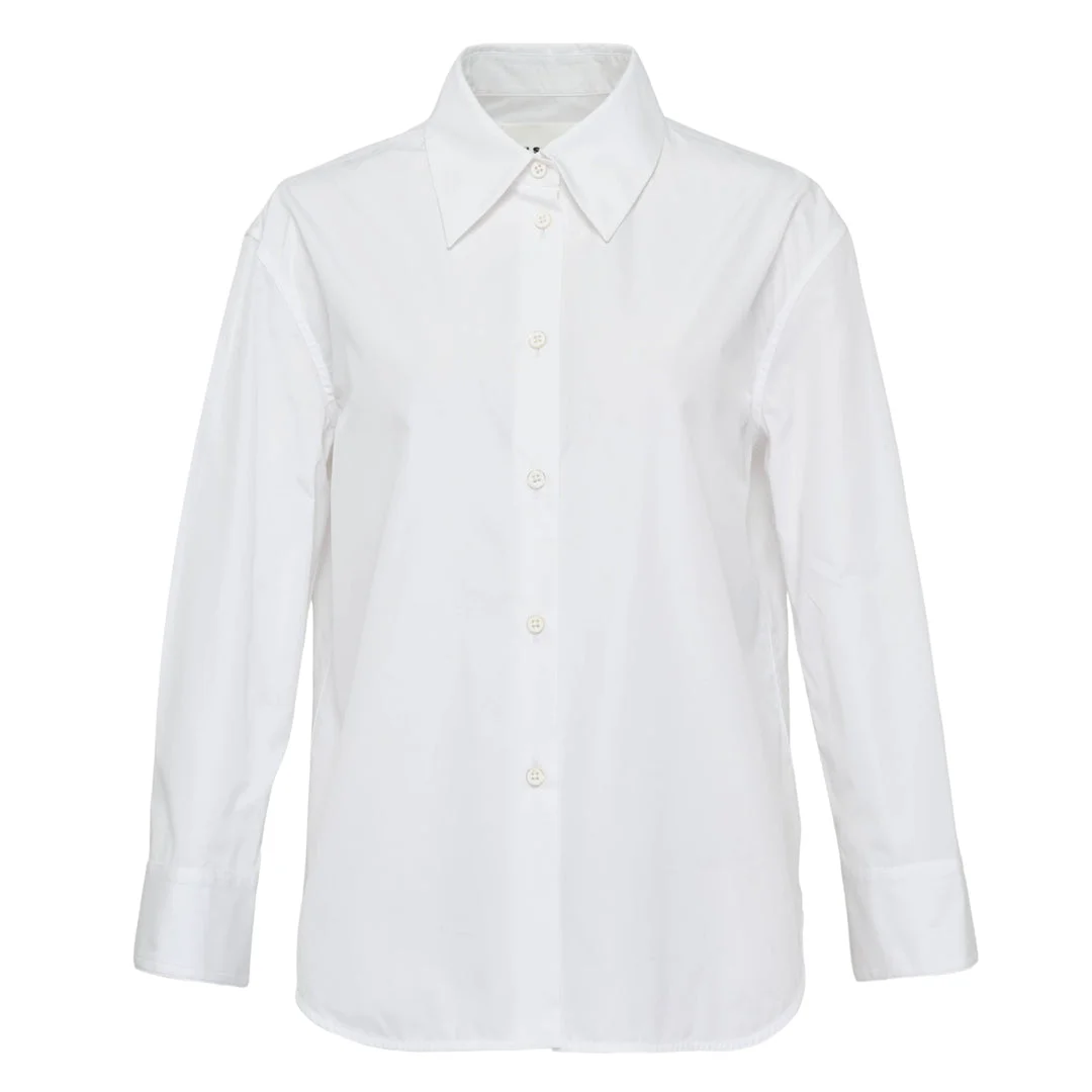 600077949WHT032 / J02DL0287/J45001/100 - Classic point collar - Long sleeves with barrel cuffs - Concealed button placket - Organic cotton poplin construction - Relaxed fit - Clean minimalist design The Jil Sander Organic Cotton Poplin Shirt delivers minimalist luxury with sustainable craftsmanship and clean architectural lines. Made from premium organic cotton poplin in crisp white, featuring the brand's signature refined tailoring and structured silhouette. The classic point collar and concealed button placket create timeless sophistication for contemporary wardrobes.