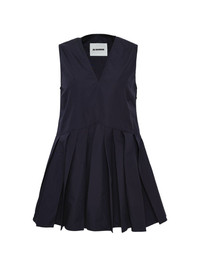 V-neck cotton blouse Highlights - Navy blue - Pleated skirt - V-neck - Sleeveless Made In Italy Composition Cotton 100% Washing instructions Read Manufacturer Guidelines