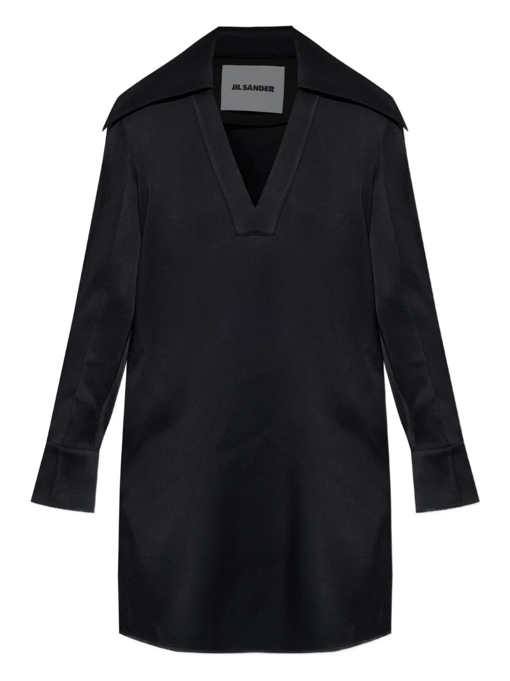 oversized-collar dress Highlights - Black - Satin finish - Oversized collar - Long sleeves - Straight hem Made in Italy Composition Acetate 73%, Viscose 27% Washing instructions Read Manufacturer Guidelines