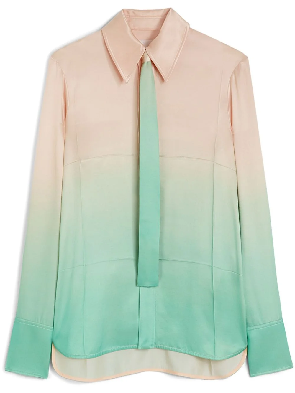 tie-detail shirt Highlights - Light pink - Concealed front button fastening - Straight-point collar - Buttoned cuffs - Tonal gradient effect Made in Italy Composition Viscose 67%, Fabric 33%