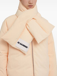 padded down scarf Highlights - Peach orange - Goose down - Padded design - Water-repellent - Logo tag Made in Italy Composition Polyester 100% SIZE & FIT Measurement LENGTH 43.3 in(110 cm) WIDTH 7.87 in(20 cm)