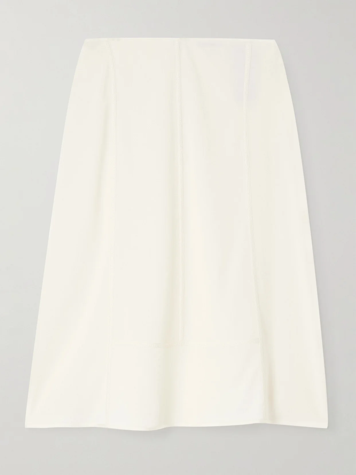 Jil Sander's skirt is made from jersey with tonal stitching to highlight the cool paneled design. It sits at your natural waist and falls well below the knee. We think it looks especially chic with a tonal top.