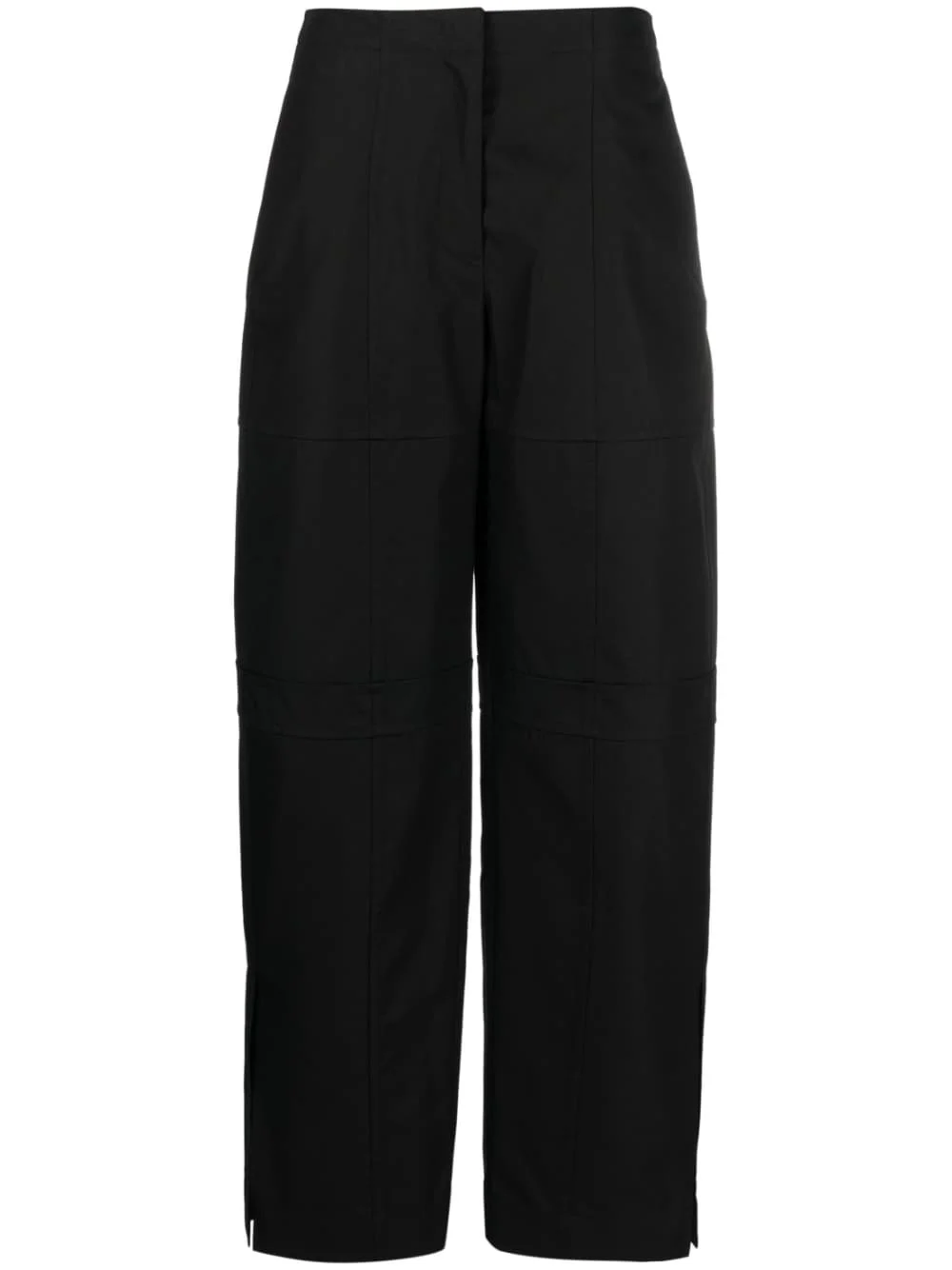 panelled straight-leg cut trousers Highlights - Black - Cotton - Panelled design - Straight leg - Concealed front fastening - Two side inset pockets Made in Italy Composition Outer: Cotton 70%, Polyester 30% Lining: Viscose 100% SIZE & FIT Model measurements Height 5 ft 11 in(1.8 m) Bust/Chest 33.07 in(84 cm) Hips 37.4 in(95 cm) Waist 25.19 in(64 cm) FittingInformation Designed with a wide-leg cut, these trousers allow for a close fit at the waist and offer a loose and roomy fit over the leg Made from a midweight non-stretch fabric This piece fits small – take one size up