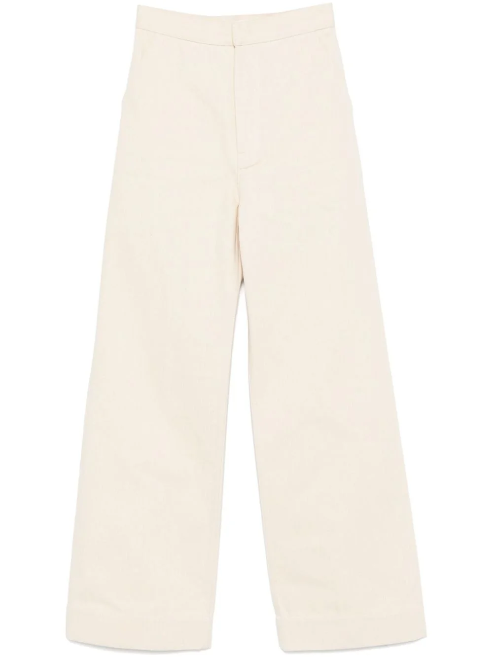 straight-leg trousers Highlights - Light beige - Hook and zip fly fastening - Two diagonal pockets to the sides - Two rear patch pockets Made in Italy Composition Lining: Cotton 100% Outer: Cotton 100% SIZE & FIT Model measurements Height 5 ft 10 in(1.77 m) Bust/Chest 32.28 in(82 cm) Hips 35.03 in(89 cm) Waist 25.19 in(64 cm) FittingInformation Designed with a wide-leg cut, these trousers allow for a close fit at the waist and offer a loose and roomy fit over the leg Sturdy and hard-wearing, this denim piece offers no stretch Washing instructions Dry Clean Only