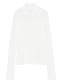 mock-neck long-sleeve top Highlights - White - Mock neck - Long sleeves - Straight hem Made in Italy Composition Viscose 100% SIZE & FIT Model measurements Height 5 ft 9 in(1.76 m) Bust/Chest 31.88 in(81 cm) Hips 35.43 in(90 cm) Waist 24.8 in(63 cm) Washing instructions Dry Clean Only