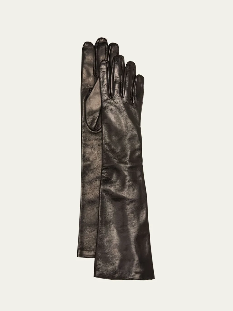 Jil Sander long gloves in patent leather Tonal stitching Zip closure Made in Italy