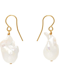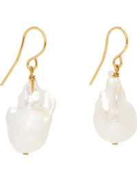 Pair of handcrafted drop earrings in gold-tone brass. · Freshwater pearl at drop · Hook fastening · H1.5" x W0.5" Supplier color: Platino Brass, pearl. Made in Italy 261249F022004
