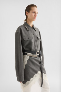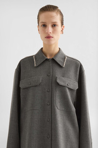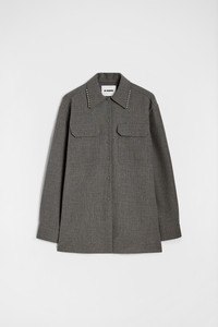 Long-sleeved wool canvas shirt with chest pockets and metal beads at collar Details - relaxed fit and dropped shoulders - pointed collar - centre-front button closure - utility pockets on chest - buttoned cuffs - viscose lining - wool canvas - 100% wool - made in Italy - StyleID: J03DL0210J41557030 Care - dry clean only - iron with care Fit - model is 177cm/5'9" and is wearing a size 36 DE - Please note that the physical label of the item will show the German size
