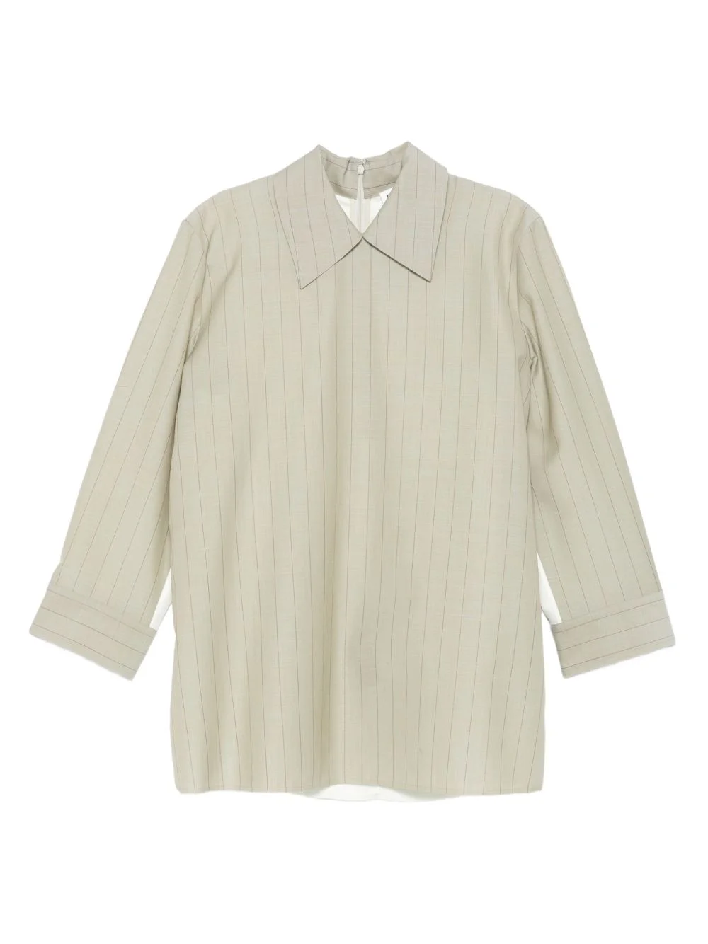 pinstripe panelled shirt Highlights - Neutrals - Pinstripe pattern - Collared neckline Made in Italy Composition Wool 76%, Mohair 23%, Cotton 1% SIZE & FIT Model measurements Height 5 ft 9 in(1.75 m) Bust/Chest 34.64 in(88 cm) Hips 36.61 in(93 cm) Waist 26.37 in(67 cm) Washing instructions Read Manufacturer Guidelines