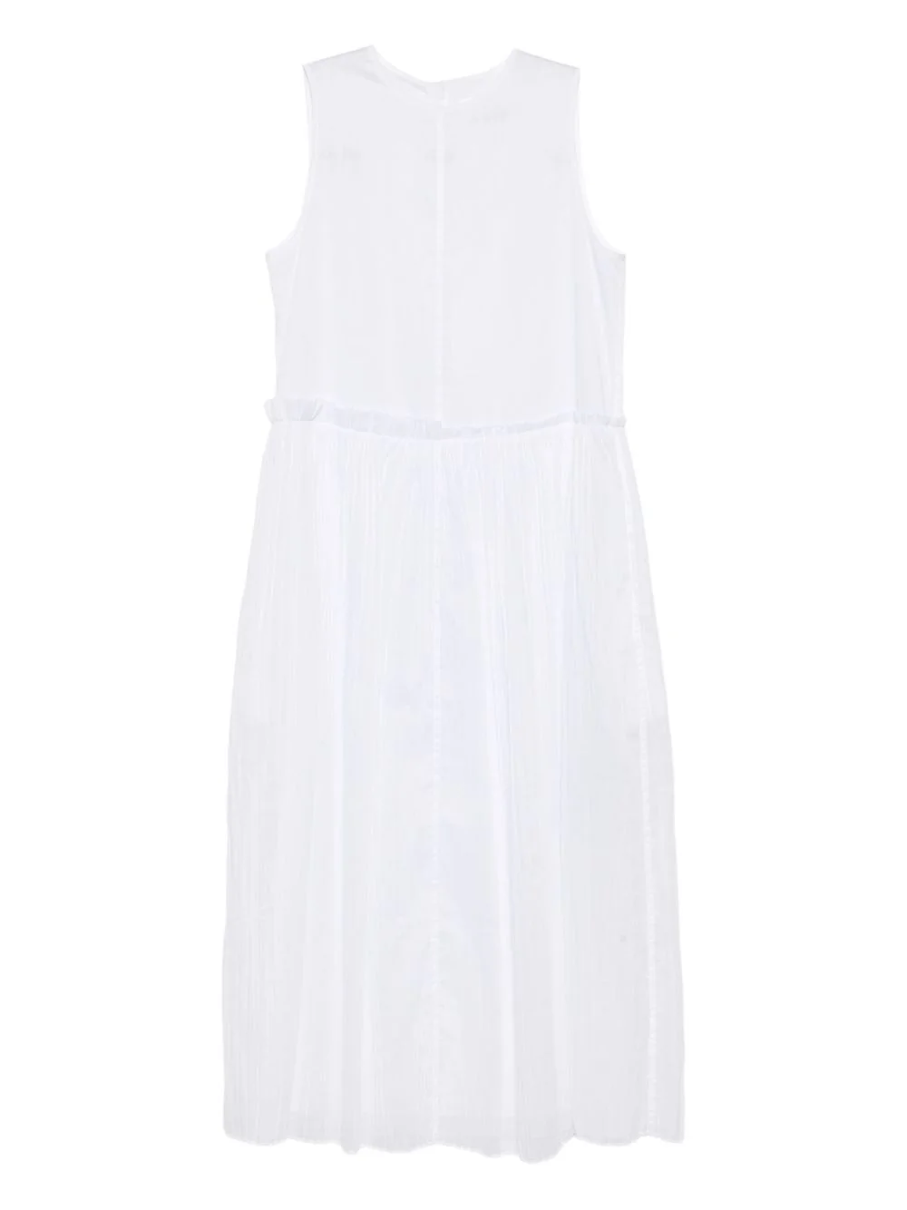 pleated cotton dress Highlights - White - Rear zip fastening - Crew neck - Sleeveless Made in Italy Composition Cotton 100% SIZE & FIT Model measurements Height 5 ft 10 in(1.78 m) Bust/Chest 31.88 in(81 cm) Hips 37 in(94 cm) Waist 25.19 in(64 cm) FittingInformation Designed for a relaxed fit, this piece allows for comfort and movement when worn Made from a lightweight non-stretch fabric Washing instructions Dry Clean Only