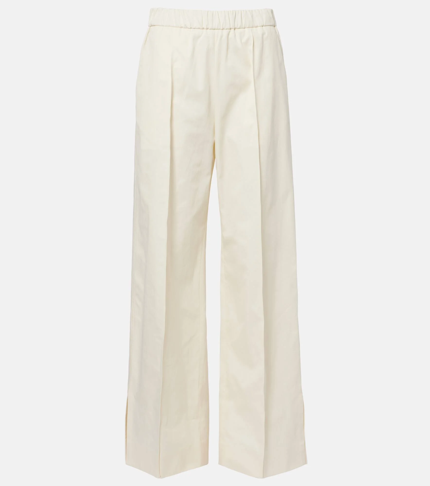 Pleated cotton wide-leg pants