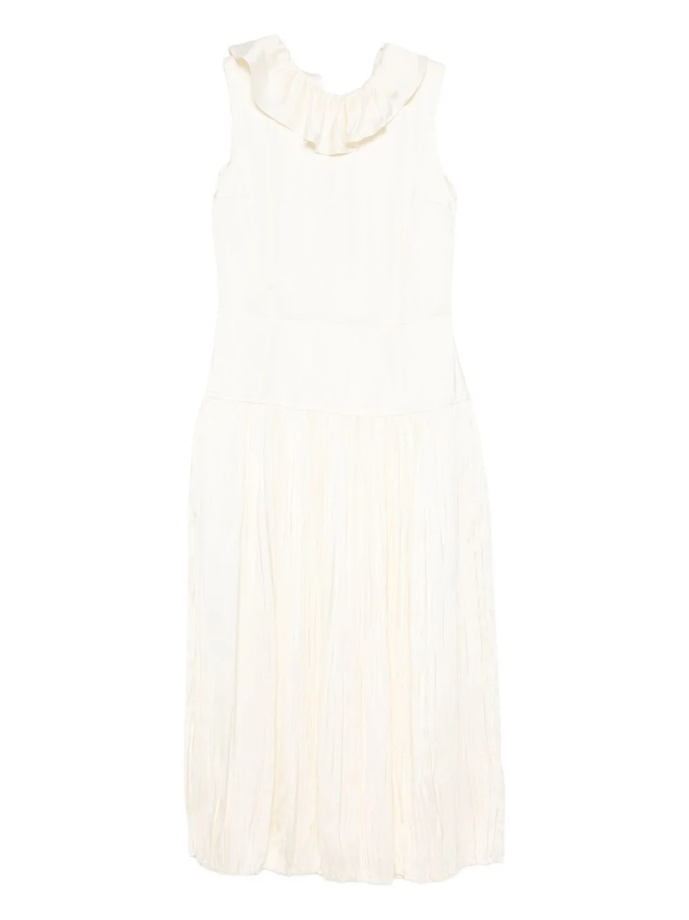 pleated ruffled dress Highlights - Off-white - Pleated skirt - Sleeveless - Ruffled trim - A-line silhouette - Straight hem Imported Composition Fabric 100% SIZE & FIT Model measurements Height 5 ft 10 in(1.78 m) Bust/Chest 31.49 in(80 cm) Hips 37 in(94 cm) Waist 23.62 in(60 cm) Washing instructions Read Manufacturer Guidelines