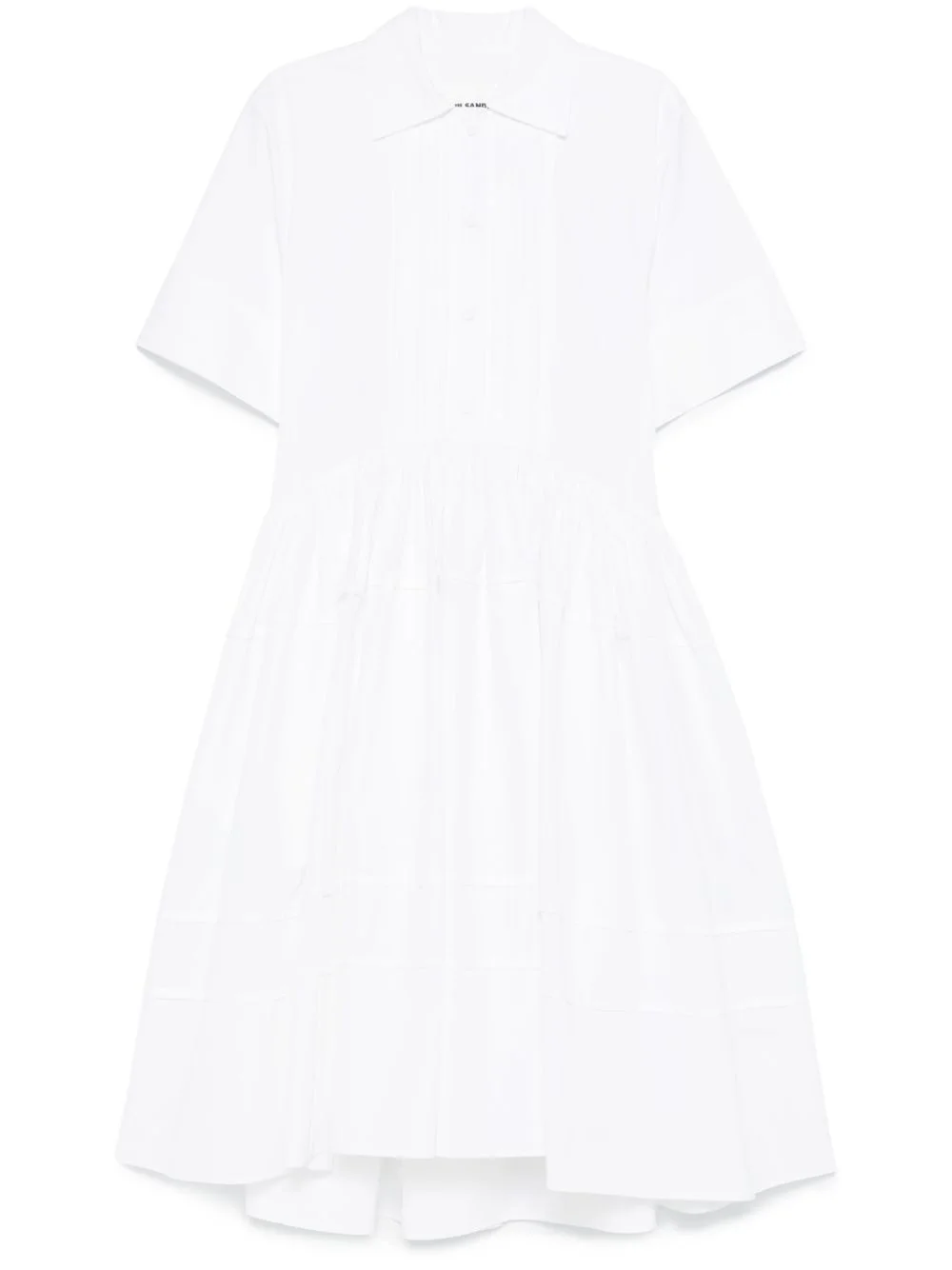 cotton midi dress Highlights - White - Front button fastening - Two side inset pockets - Classic collar - Short sleeves Made in Italy Composition Cotton 100% SIZE & FIT Model measurements Height 5 ft 10 in(1.78 m) Bust/Chest 33.85 in(86 cm) Hips 36.61 in(93 cm) Waist 26.77 in(68 cm) FittingInformation Designed to be unstructured, offering a loose fit throughout Made from a midweight non-stretch fabric