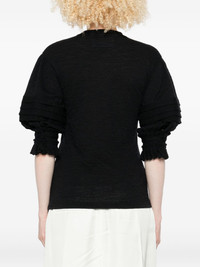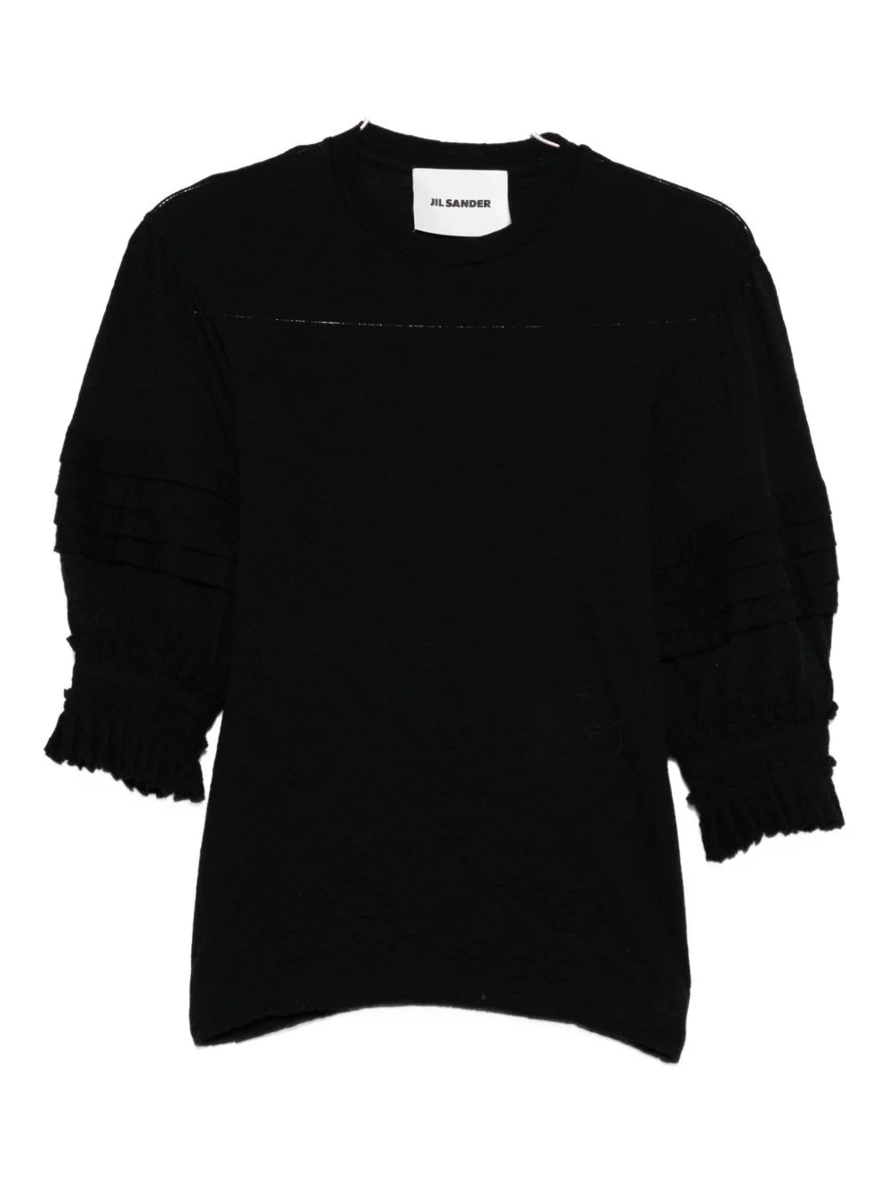 pleated-sleeve top Highlights - Black - Pleated sleeves - Crew neck - Short sleeves Made in Italy Composition Wool 80%, Polyamide 20% SIZE & FIT Model measurements Height 5 ft 9 in(1.75 m) Bust/Chest 34.64 in(88 cm) Hips 36.61 in(93 cm) Waist 26.37 in(67 cm) Washing instructions Dry Clean Only