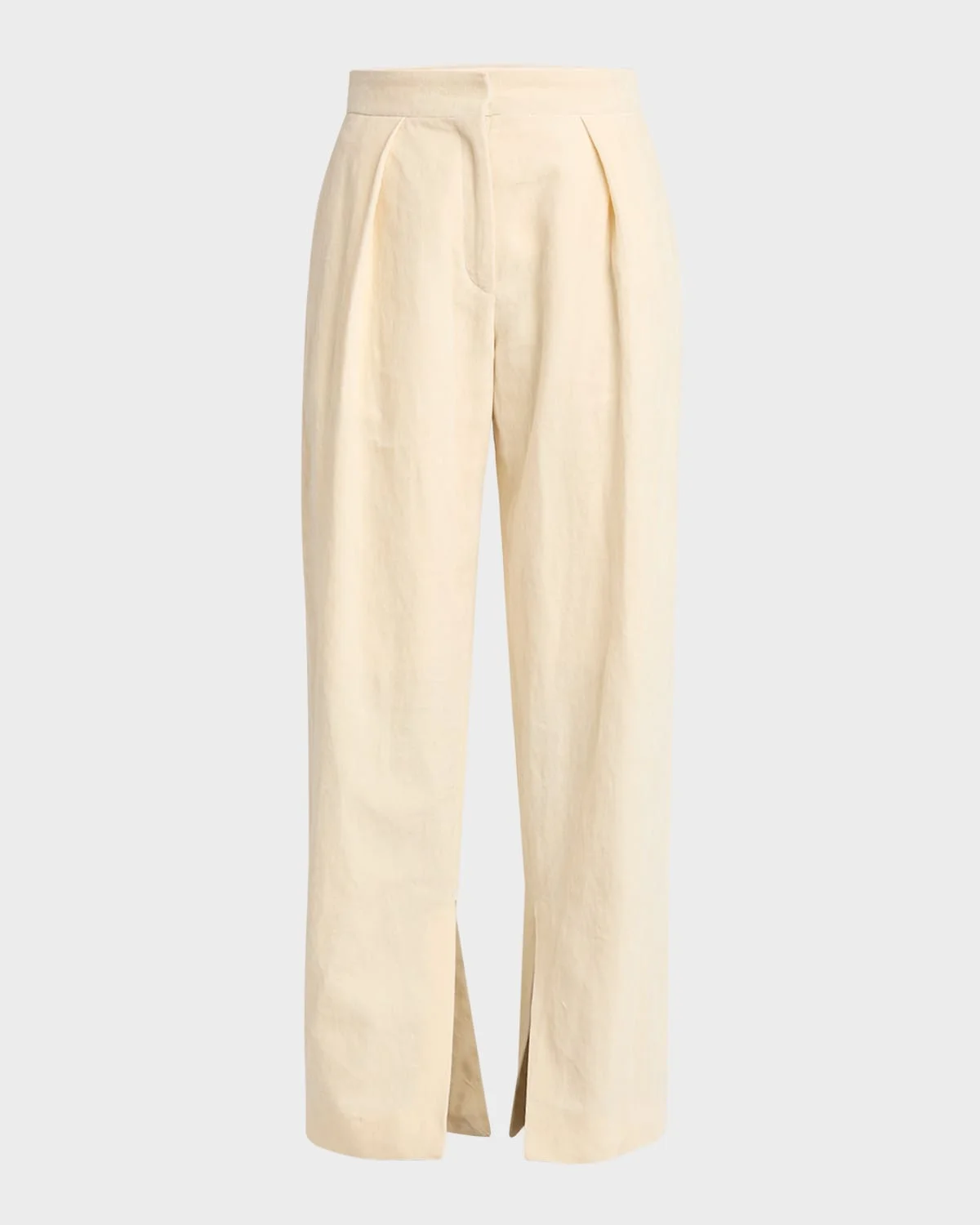 Pleated Wide-Leg Hem-Slits Trousers