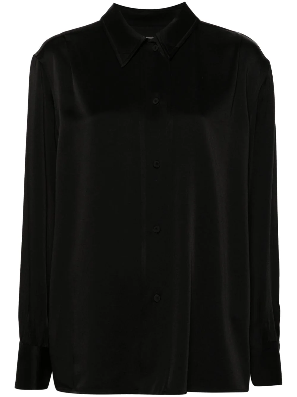 black satin finish pointed flat collar long wide sleeves with buttoned cuffs straight hem rear pleat detailing fabric-covered buttons front button fastening - Color: BLACK - Made in: Italy - Designer Style ID: J76018 J02DL0217 001 Composition and care Acetate: 74.0%, Viscose: 26.0%