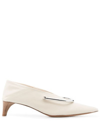 pointed-toe 450mm pumps beige calf leather slip-on style circular design pointed toe mid cone heel Made in Italy Composition Sole: Calf Leather 100% Lining: Calf Leather 100% Outer: Calf Leather 100% SIZE & FIT Measurement HEEL 1.77 in(4.5 cm)