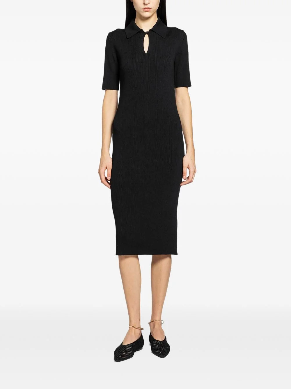 wool midi polo dress Highlights - Black - Ribbed knit - Polo collar - Short sleeves - Back slit Made in Italy Composition Virgin Wool 100% Washing instructions Read Manufacturer Guidelines