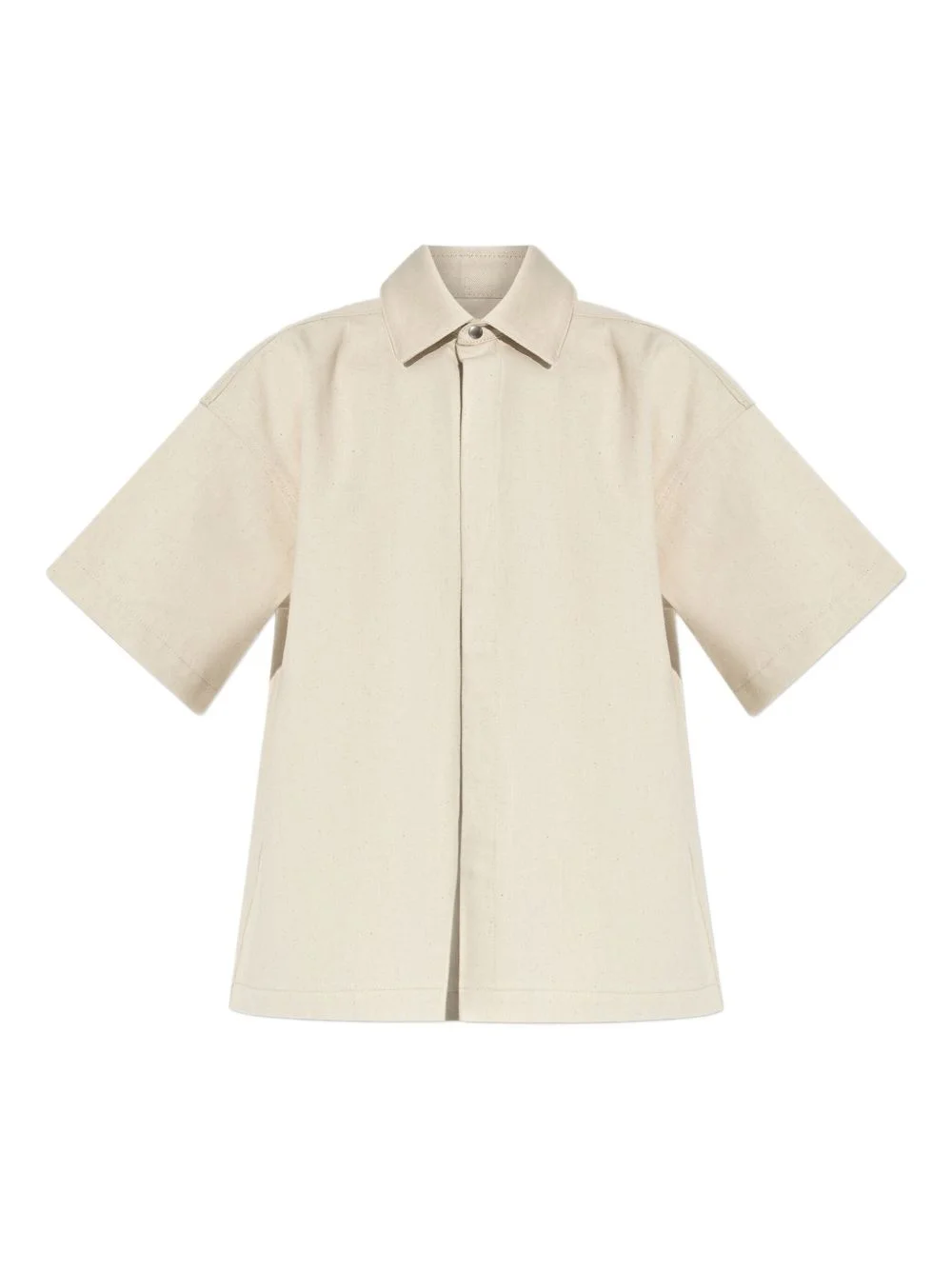 poplin shirt Highlights - Beige - Logo patch to the rear - Drop shoulder - Front button fastening - Short sleeves Imported Composition Cotton 100%