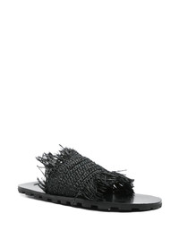 raffia sandals Highlights - Black - Round open toe - Flat sole - Fringed edge Made in Italy Composition Lining: Calf Leather 100% Sole: Rubber 100% Straw 100%