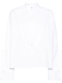 cropped cotton poplin shirt Highlights - Optical white - Cotton - Poplin texture - Cut-out detailing to the sleeves - Box-pleat detail to the rear - Stand-up collar - Drop shoulder - Long sleeves - Buttoned cuffs - Short side slits - Front button fastening - High-low hem - Unlined Made in Italy Composition Cotton 100% SIZE & FIT Model measurements Height 5 ft 10 in(1.77 m) Bust/Chest 33.07 in(84 cm) Hips 37 in(94 cm) Waist 24.8 in(63 cm) FittingInformation Designed for a boxy fit, intended for a loose fit throughout Made from a midweight non-stretch fabric This piece fits true to size – take your usual size Washing instructions Dry Clean Only