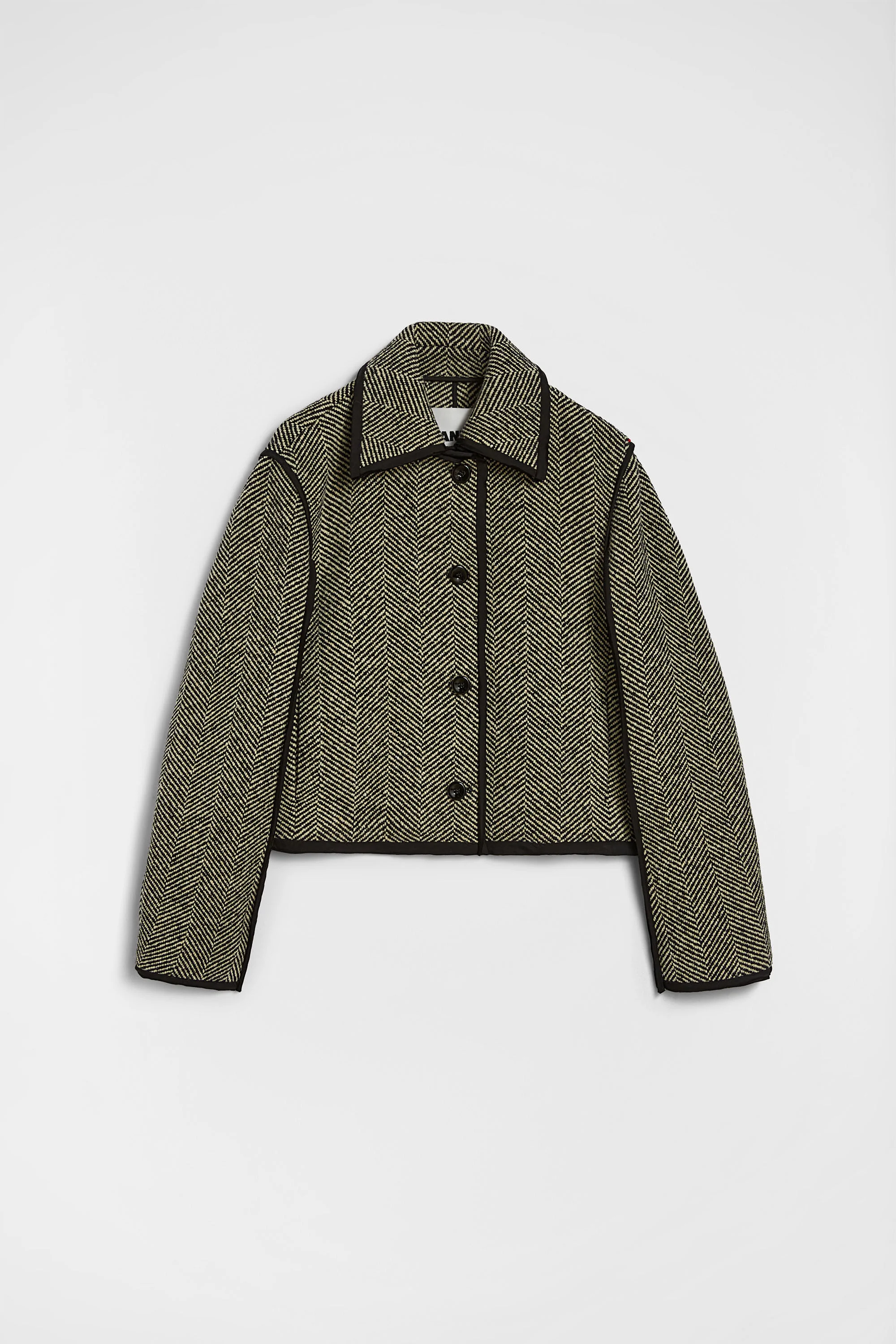 Short-length herringbone virgin wool blend jacket with contrast trims Details - regular fit and short length - dropped shoulders - pointed collar - centre-front button closure - side pockets - contrast raw edges - viscose lining - herringbone virgin wool blend - 80% virgin wool 20% polyamide-nylon - made in Italy - StyleID: J02BN0229J40261092 Care - dry clean only - iron with care Fit - model is 177cm/5'9" and is wearing a size 34 DE - Please note that the physical label of the item will show the German size