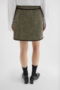 Herringbone virgin wool blend skirt with contrast trims Details - regular fit - normal waist - side zip closure - belt loops - side-seam pockets - contrast raw edges - viscose lining - herringbone virgin wool blend - 80% virgin wool 20% polyamide-nylon - made in Italy - StyleID: J02MA0340J40261092 Care - dry clean only - iron with care Fit - model is 177cm/5'9" and is wearing a size 34 DE - Please note that the physical label of the item will show the German size