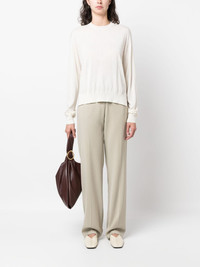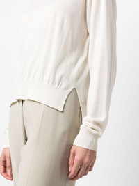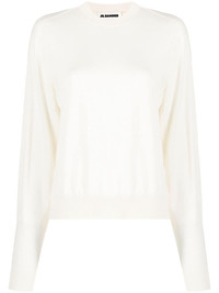 ribbed crew neck jumper Spun in Italy from a delicate blend of virgin wool, cashmere and silk, this white crew neck jumper speaks to Jil Sander's minimalist take on garments. Its understated design is cut to a relaxed silhouette and fitted with a ribbed hem and cuffs. Highlights - White - Virgin wool-cashmere blend - Knitted construction - Crew neck - Long sleeves - Ribbed cuffs and hem Made in Italy Composition Cashmere 35%, Virgin Wool 35%, Silk 30% SIZE & FIT Model measurements Height 5 ft 9 in(1.76 m) Bust/Chest 33.07 in(84 cm) Hips 34.64 in(88 cm) Waist 25.59 in(65 cm) FittingInformation Designed for a relaxed fit, this piece allows for comfort and movement when worn Made with a lightweight knit, this piece offers some stretch This piece fits true to size – take your usual size Washing instructions Dry Clean Only