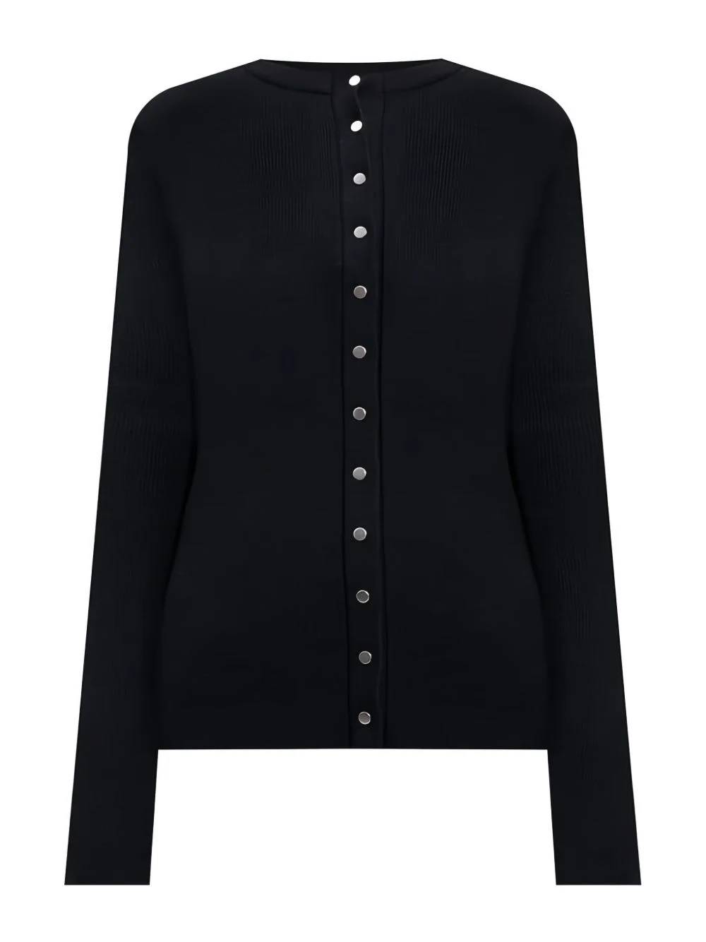 ribbed front-button cardigan Highlights - Black - Ribbed texture - Long sleeves - Crew neck - Front-button fastening Made in Italy Composition Wool 100% Washing instructions Read Manufacturer Guidelines