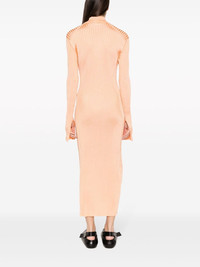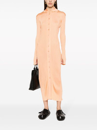 ribbed-knit midi dress Highlights - Salmon pink - Stretch-design - Ribbed knit - Spread collar - Front button fastening - Long slit sleeves - Calf-length - Straight hem Made in Italy Composition Viscose 100% SIZE & FIT Model measurements Height 5 ft 11 in(1.8 m) Bust/Chest 31.49 in(80 cm) Hips 36.22 in(92 cm) Waist 25.59 in(65 cm) FittingInformation Designed for a slim fit that sits just away from the body offering a close yet comfortable fit Made with a midweight knit, this piece offers some stretch This piece fits true to size – take your usual size Washing instructions Dry Clean Only