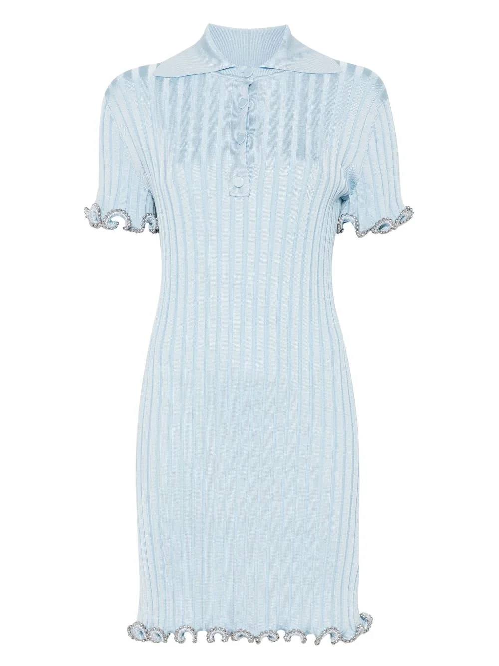 ribbed-knit mini dress Highlights - Baby blue - Short front button fastening - Polo collar - Short sleeves - Lettuce hem Made in Italy Composition Viscose 93%, Polyamide 5%, Polyurethane 2% Washing instructions Dry Clean Only