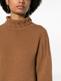 roll-neck cashmere jumper Highlights - Caramel brown - Cashmere - Chunky ribbed knit detail - Roll neck - Long sleeves - Ribbed cuffs and hem - Straight hem Made in Italy Composition Cashmere 100% SIZE & FIT Model measurements Height 5 ft 10 in(1.78 m) Bust/Chest 32.67 in(83 cm) Hips 35.43 in(90 cm) Waist 23.22 in(59 cm) FittingInformation Designed for a relaxed fit, this piece allows for comfort and movement when worn Made with a midweight knit, this piece offers some stretch This piece fits true to size – take your usual size Washing instructions Dry Clean Only