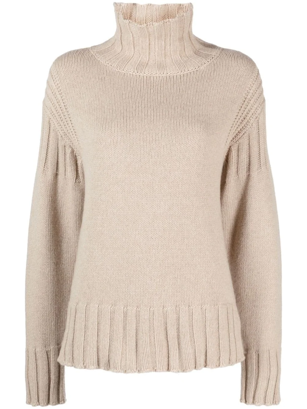 roll-neck cashmere jumper Highlights - Sand beige - Cashmere - Knitted construction - Chunky ribbed knit detail - Roll neck - Long sleeves - Straight hem - Ribbed cuffs and hem Made in Italy Composition Cashmere 100% SIZE & FIT Model measurements Height 5 ft 11 in(1.8 m) Bust/Chest 30.7 in(78 cm) Hips 35.03 in(89 cm) Waist 24.4 in(62 cm) Washing instructions Dry Clean Only
