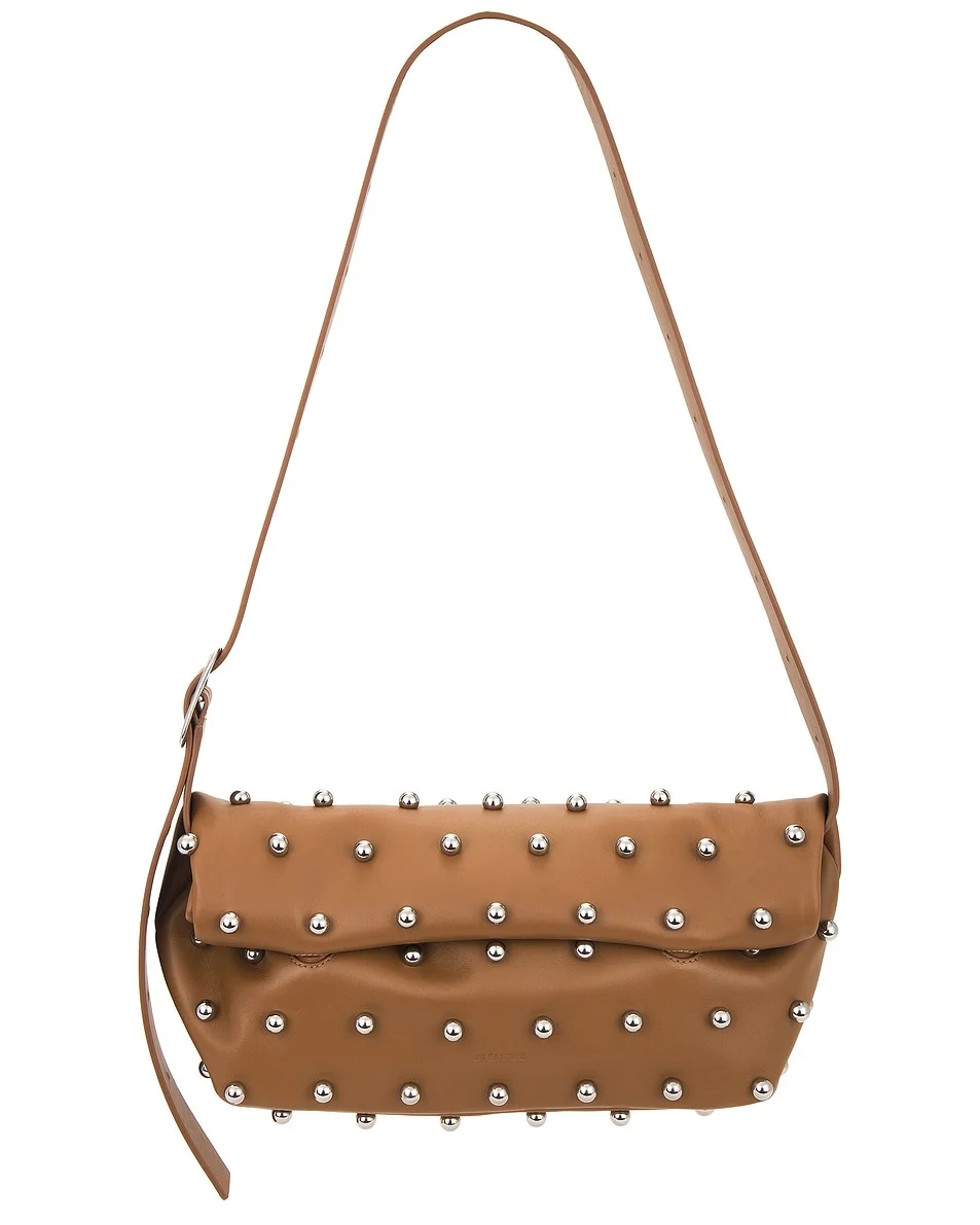 Details - Soft calfskin exterior with silver-tone bead embellishment and nappa lining - Flaptop with magnetic closure - One main compartment - Interior zipper pocket - Adjustable shoulder strap - Measures approx 27 cm W x 12 cm H x 8 cm D - Shoulder strap with a 36 cm drop - Made in Italy - Our Style No. JILS-WY62 - Manufacturer Style No. J08WG0048-P8345-226