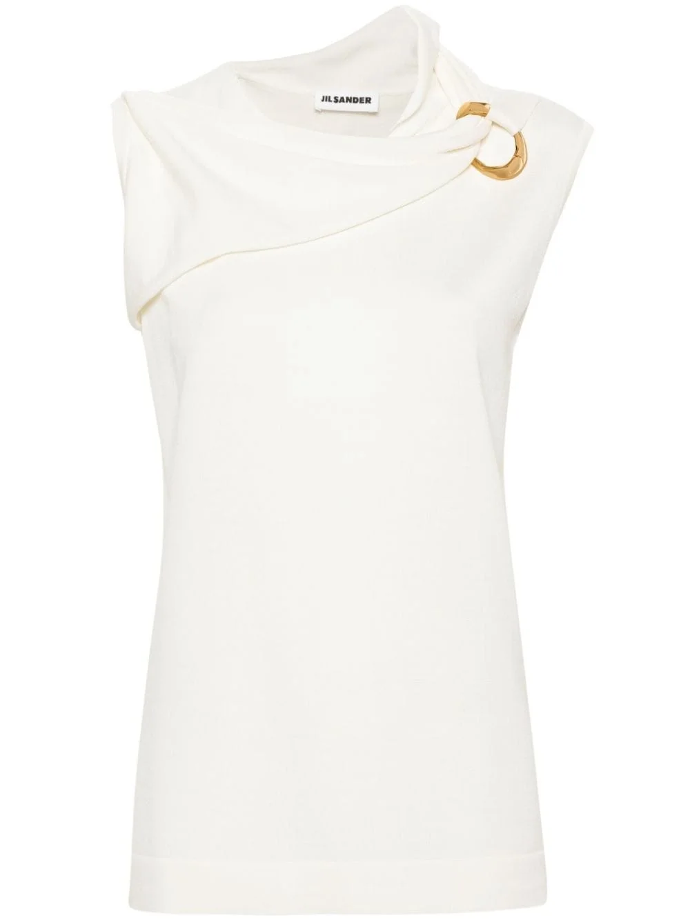 hardware-detail knitted tank top Highlights - Cream white - Virgin wool - Ruched detailing - Round neck - Sleeveless - Straight hem Made in Italy Composition Virgin Wool 100% SIZE & FIT Model measurements Height 5 ft 9 in(1.76 m) Bust/Chest 33.07 in(84 cm) Hips 34.64 in(88 cm) Waist 25.59 in(65 cm) Measurement BUST 39.37 in(100 cm) LENGTH 25.98 in(66 cm) Shoulder Width 15.74 in(40 cm) WAIST 40.15 in(102 cm) FittingInformation Designed for a relaxed fit, this piece allows for comfort and movement when worn Made with a midweight knit, this piece offers some stretch This piece fits true to size – take your usual size