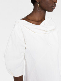 ruched-detail short dress Showing the brand's focus on clean minimalist styles, this short dress from Jil Sander arrives in a full white colour. Its design is crafted from a mix of cotton, linen and silk and is defined by a ruched detail at the neck. Highlights - White - Cotton-linen blend/silk blend - Ruched detailing - Boat neck - Three-quarter length sleeves - Straight hem - Concealed rear zip fastening - This item contains at least 50% materials which are certified or widely recognised as having a lower environmental impact through production and/or manufacturing processes that reduce water consumption and the use of harmful chemicals, or re-use by-products of the production process. Made in Italy Composition Outer: Linen/Flax 64%, Viscose 36% Lining: Viscose 100%, Cotton 74%, Silk 26% SIZE & FIT Model measurements Height 5 ft 9 in(1.76 m) Bust/Chest 32.3 in(82 cm) Hips 34.3 in(87 cm) Waist 23.6 in(60 cm) FittingInformation Designed for a slim fit that sits just away from the body offering a close yet comfortable fit Made from a midweight non-stretch fabric This piece fits true to size – take your usual size