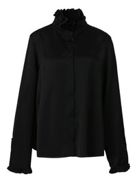 ruffled collar blouse Highlights - Black - Ruffled collar - Ruffled cuffs - Long sleeves - Button-up closure - Ruched back Made in Italy Composition Viscose 100% Washing instructions Read Manufacturer Guidelines