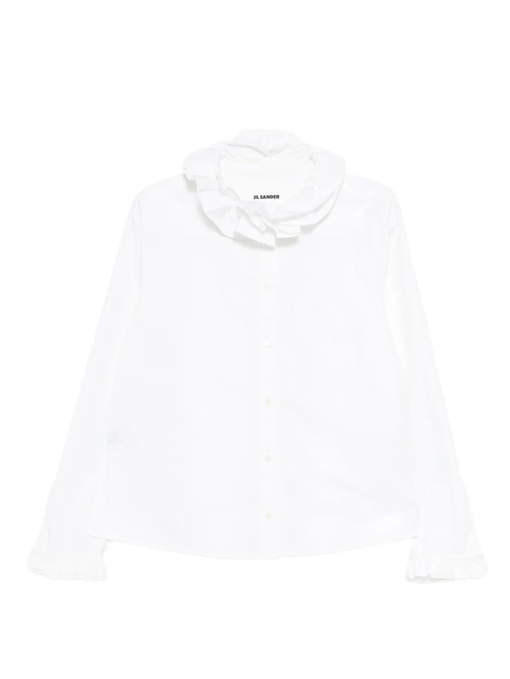 ruffled shirt Highlights - White - Front button fastening - Ruffle cuffs Made in Italy Composition Cotton 100% SIZE & FIT Model measurements Height 5 ft 9 in(1.76 m) Bust/Chest 31.1 in(79 cm) Hips 35.03 in(89 cm) Waist 24.4 in(62 cm) FittingInformation Designed to be unstructured, offering a loose fit throughout Made from a midweight non-stretch fabric Washing instructions Dry Clean Only