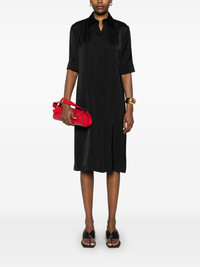 satin midi shirt dress Highlights - Black - Front button fastening - Front slit - Short sleeves - Buttoned cuffs Made in Italy Composition Viscose 100% SIZE & FIT Model measurements Height 5 ft 11 in(1.8 m) Bust/Chest 31.49 in(80 cm) Hips 36.61 in(93 cm) Waist 24.4 in(62 cm) FittingInformation Designed for a relaxed fit, this piece allows for comfort and movement when worn Made from a midweight non-stretch fabric
