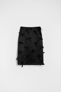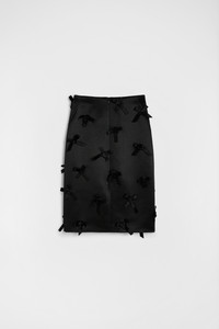 Knee-length heavy satin skirt with embroidered bows Details - straight cut - regular waist - centre-back zip closure and slit - silk bows - viscose lining - heavy shiny satin - 100% acetate - made in Italy - StyleID: J03MA0270J75001001 Care - dry clean only - iron with care Fit - model is 177cm/5'9" and is wearing a size 34 DE - Please note that the physical label of the item will show the German size