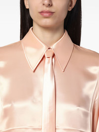 satin tie-neck shirt Highlights - Soft peach - Classic collar - Button-up front - Tie detail at neck - Long sleeves Made in Italy Composition Outer: Viscose 67%, Cupro 33% Lining: Viscose 100%, Cotton 100% Washing instructions Read Manufacturer Guidelines