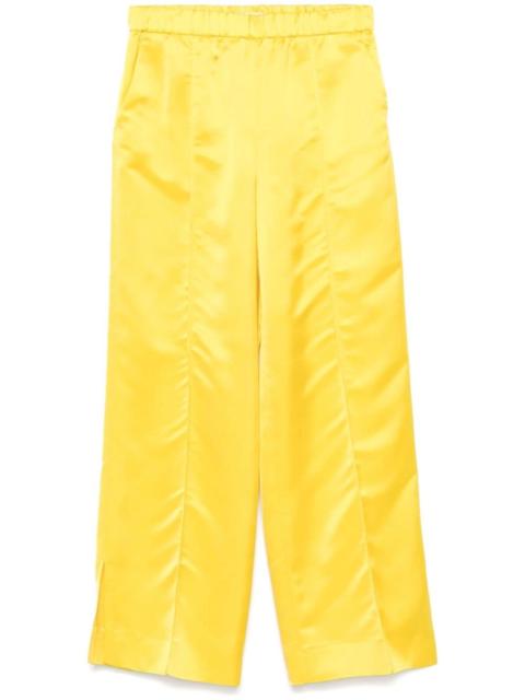 satin trousers Highlights - Lemon yellow - Satin finish - Elasticated waistband - Seam detailing - Two side inset pockets - Rear welt pocket - Wide leg Made in Italy Composition Cupro 56%, Viscose 44% SIZE & FIT FittingInformation Designed for a straight-leg fit, these trousers allow for a close fit at the waist and an unrestricted, comfortable fit over the leg The elasticated waist allows for a comfortable fit Made from a midweight non-stretch fabric