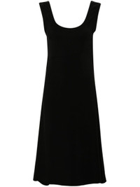 black scoop neck concealed rear zip fastening sleeveless scoop back straight hem mid-length Size & Fit Model Measurements: Height: 1.76 m Bust/Chest: 83.0 cm Hips: 90.0 cm Waist: 62.0 cm Model wears size 36 Fabric and Care Designer Style ID: J02CT0302J66143 Designer Colour: 001 BLACK Composition: Elastane 5%, Silk 17%, Viscose 78% Washing instructions: Dry Clean Only Made in Italy