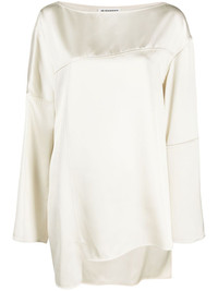seam-detail crepe blouse Highlights - Sesame beige - Crepe texture - Seam detailing - Tonal stitching - Wide neck - Long sleeves - Side slits - High-low hem Made in Italy Composition Viscose 83%, Silk 17% SIZE & FIT Model measurements Height 5 ft 10 in(1.78 m) Bust/Chest 31.49 in(80 cm) Hips 37 in(94 cm) Waist 23.62 in(60 cm) FittingInformation Designed to be unstructured, offering a loose fit throughout Made from a midweight non-stretch fabric This piece fits true to size – take your usual size