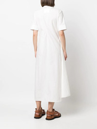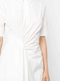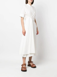 ruched shirt midi dress off-white cotton straight-point collar front button placket short sleeves knee-length Made in Italy Composition Polyester 100%, Cotton 100% SIZE & FIT Model measurements Height 5 ft 10 in(1.77 m) Bust/Chest 35.03 in(89 cm) Hips 35.03 in(89 cm) Waist 23.62 in(60 cm) FittingInformation This piece fits true to size. We recommend you get your regular size Designed for a close fit at the bust and waist, but loose at the hip Made with a mid-weight non-stretch fabric Washing instructions Dry Clean Only