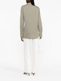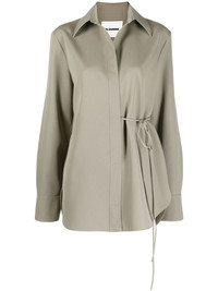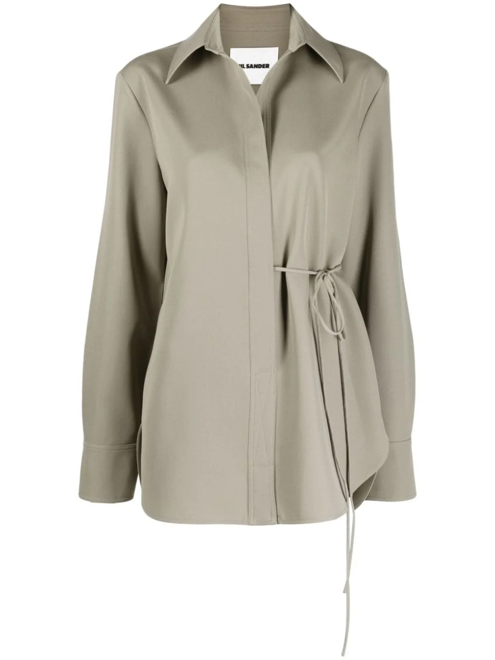 self-tie wool shirt Jil Sander's understated identity is reflected in this sage green shirt, woven in Italy from delicate wool and cut to a wrap silhouette that ties at the side. Highlights - Slate green - Wool - Classic collar - Concealed front button fastening - Front self-tie fastening - Buttoned-cuff sleeves - Straight cut - Curved hem Made in Italy Composition Wool 100% SIZE & FIT Model measurements Height 5 ft 10 in(1.79 m) Bust/Chest 31.1 in(79 cm) Hips 35.03 in(89 cm) Waist 24.01 in(61 cm) FittingInformation Designed to be unstructured, offering a loose fit throughout Made from a lightweight non-stretch fabric This piece fits true to size – take your usual size Washing instructions Dry Clean Only